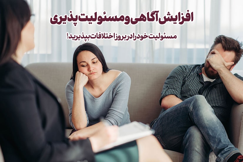 هر یک از زوجین باید مسئولیت سهم خود در بروز اختلافات را بپذیرند. این امر می‌تواند به کاهش تنش‌ها و بهبود روابط کمک کند. زوجین بایستی آگاهی و دانش خود را افزایش دهند و مهارت‌های ارتباطی را یاد بگیرند تا در مواقع لازم به صورت آگاهانه و بالغانه با مسائل، موضوعات و اختلافات برخورد کنند. در مواردی که اختلافات به شدت بالا می‌گیرد و حل آن‌ها دشوار است، یک مشاور و راهنما می‌تواند کمک‌کننده باشد. مشاوره می‌تواند به زوجین ابزارها و تکنیک‌هایی برای مدیریت بهتر تعارضات ارائه دهد.